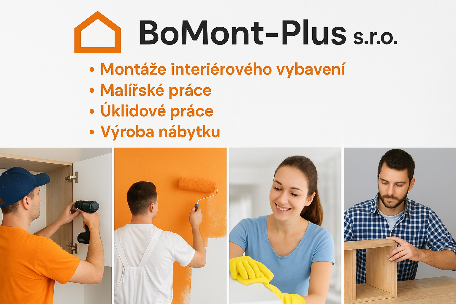 Jsme profesionální firma s dlouholetou praxí v oboru. Specializujeme se na montáže interiérů, malby, úklidové práce a výrobu nábytku. Působíme převážně v Moravskoslezském kraji a naším cílem je poskytovat kvalitní a spolehlivé služby pro naše zákazníky.